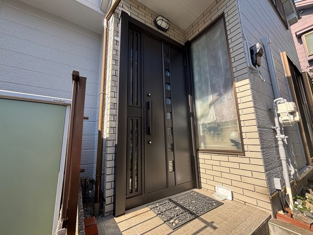 玄関ドアの交換をしました。 住まいの入り口をリニューアルして 新しい年をお迎えするのはいかがですか? 交換は数時間で終わります。今なら内窓設置をプラスすると 助成金がでる場合もあります。 お問い合わせはお気軽に!
